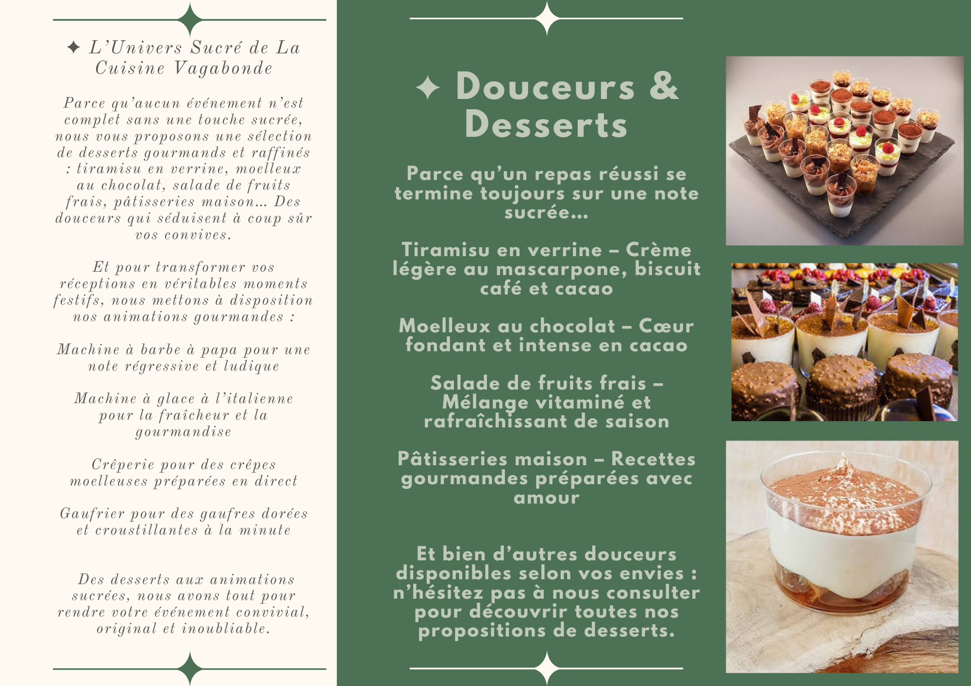 Nous intervenons 7 jours sur 7, avec des plats soignés et de très grande qualité, pour faire de votre événement un moment chaleureux et inoubliable.